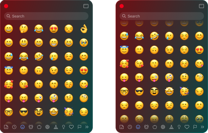 - Reduced Readability: Once the user starts scrolling the emoticons position themselves behind the semi-transparent search field making it much harder to read anything the user has or is typing